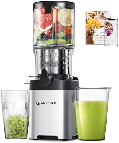 View full detailsAMZCHEF Cold Press Juicer, 5.4" Juicer Machines with Large Feed Chute for Whole Fruits & Vegetables, Stainless Steel Juice Extractor with Large Auger, Triple Strainers, Easy Cleanup & Assembly