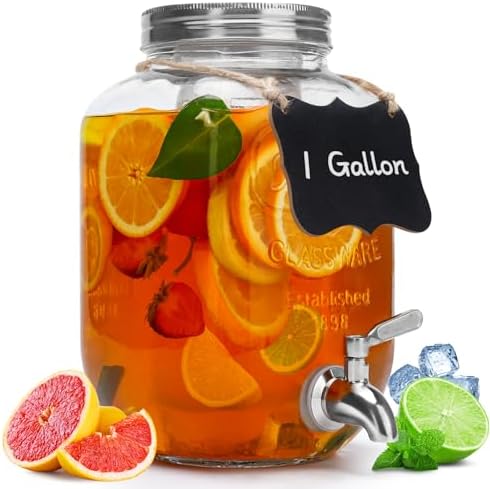 View full details1 Gallon Drink Dispenser with Spigot 18/8 Stainless Steel – Airtight & Leakproof Glass Sun Tea Jar with Anti-Rust Lids, Beverage Dispenser for Parties