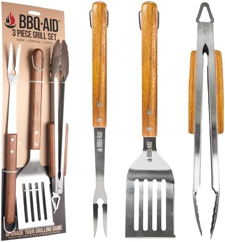 View full details3 Piece BBQ Grilling Accessories Set - BBQ Tongs Spatula Fork Set - Heavy Duty Stainless Steel Barbecue Grill Tools with Solid Hard Wood Handles Great Gift Set