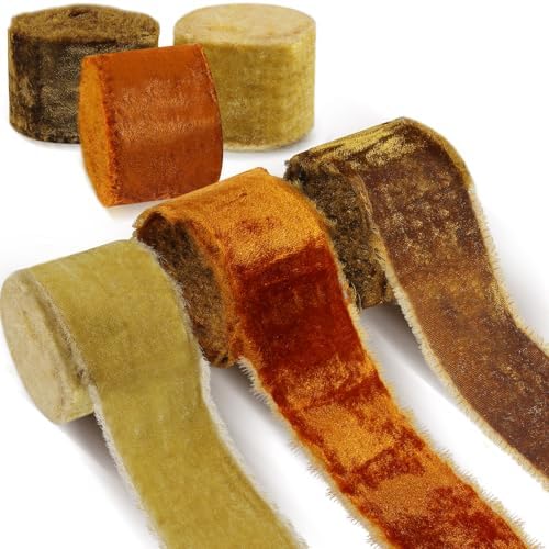 View full details3 Roll Christmas Silk Velvet Vintage Wrapping Ribbon, Raw Edge Fringe Ribbon for Xmas Bow Wreath Wrapping Floral Bouquets - 9 Yards (Apricot, Khaki, Brown, 2'' Width)