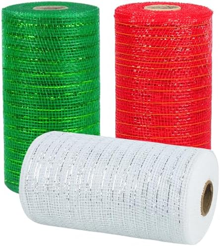 View full details3 Rolls Mesh Ribbon for Wreaths, 6 Inch x 30 Feet Each Roll Red Green White Poly Deco Mesh Rolls, Christmas Ribbon for Wreaths, Swags and Christmas Tree Decoration