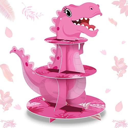 View full details3 Tier Dinosaur Cupcake Stand Party Decorations Dinosaur Theme Cupcake Holder Decorations Dino Dessert Tower for Kids Boys Jungle Dino Theme Party Birthday Supplies (Pink)