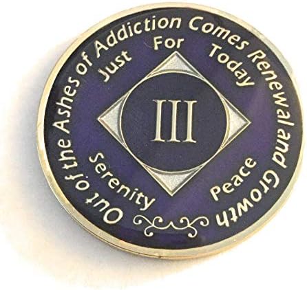 3 Year NA Deep Purple & Gold Tri Plate Medallion -Chip, Coin, Token