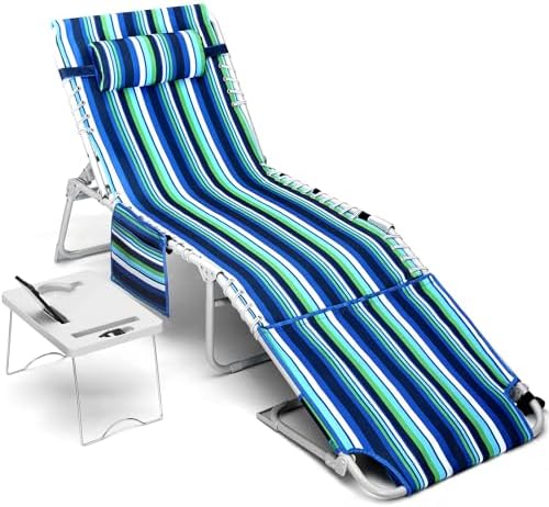 View full details3-in-1 Beach Chair Face Holes, Lounge Chair Outdoor with Folding Side Table, 5-Position Recliner, Lay Flat, Removable Pillow, Heavy Duty, Max 330lbs, Poolside, Patio, Camping, Backyard Striped Blue