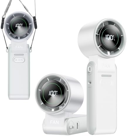 View full details3-in-1 Portable Handheld Turbo Fan-100 Speeds, 10800 RPM, 12Hrs Cooling, Digital Display, 120° Rotation, USB Rechargeable Mini Hand Held Personal Fan for Travel, Makeup, Outdoor, Indoor (White)