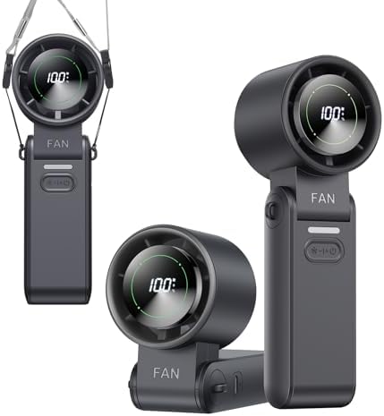 View full details3-in-1 Portable Handheld Turbo Fan-100 Speeds, 10800 RPM, 12Hrs Cooling, Digital Display, 120° Rotation, USB Rechargeable Mini Hand Held Personal Fan for Travel, Makeup, Outdoor, Indoor (Black)