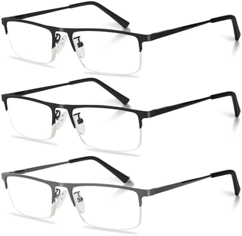 View full details3-Pack Reading Glasses for Men, Lightweight Metal Half Frame Blue Light Blocking Computer Readers, Stylish Filter UV Ray/Computer Glare with Spring Hinge Eyeglasses(2PCS Black+1PCS Gray,+3.0)