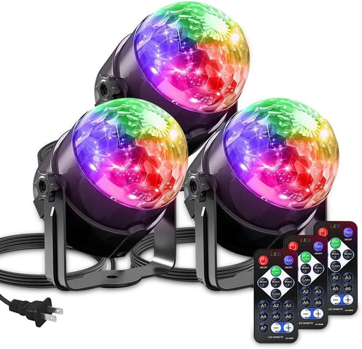 3-Pack Sound Activated Party Lights with Remote Control Dj Lighting, Disco Ball Light Projected Effect Dancing Lights, Strobe Lamp for Parties Supplies Birthday Christmas Bar KTV Decorations
