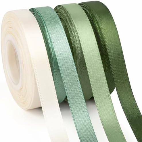 View full details3/8 Inch Green Satin Ribbon, 4 Rolls Total 40 Yards, Double Faced Mixed Green Thin Fabric Ribbon for Gift Wrapping, Flower Bouquets, Crafts, Wedding Christmas Decorations