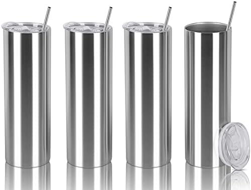 View full details30 Oz Straight Skinny Tumbler Set, Stainless Steel Slim Skinny Travel Tumbler Bulk, Birthday Diy Gift For Women Friends Sisters, 4 Pack, Silver