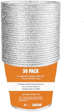 View full details30 Pack BAC407 Grease Bucket Liner for Traeger Grills,Drip Liner Drip Pan for HDW152 Grease Bucket Traeger Pro Series 575/780, 20/22/34, Ironwood 650/885 Grills,Pit Boss Pellet Grill Smoker