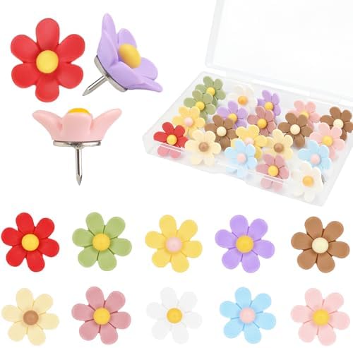 View full details30 Pcs Flowers Push Pins Decorative Thumb Tacks in 10 Colors Cute Office Decor for Cork Board Bulletin Board, Photos Wall Maps and Other Offices Schools Supplies Christmas Decoration