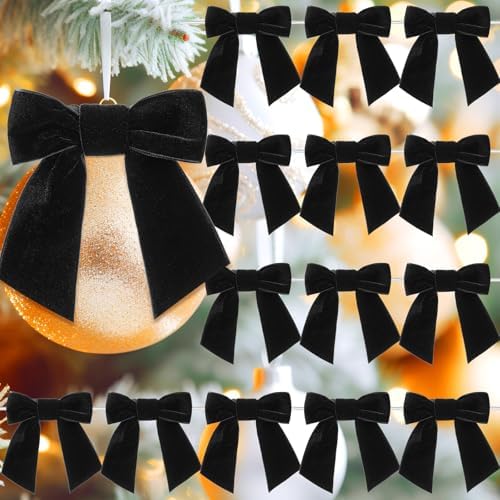 View full details30 Pcs Velvet Ribbon Bows 5" x 4" Pre Tied Christmas Velvet Bows with Twist Tie for Gift Packaging Christmas Tree Wreaths Door Windows Wedding Party Decoration(Black)