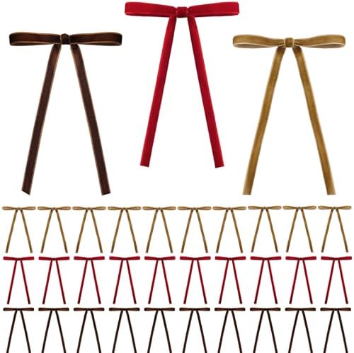View full details30 Pcs Velvet Ribbon Bows for Christmas Tree Decorations - Assorted Colors (Khaki, Brown, Red) 10 of Each, 5x7 Inch Pre-Tied Rustic Vintage Bows for Wreath, Garland, Gift Wrapping & Holiday Home Décor