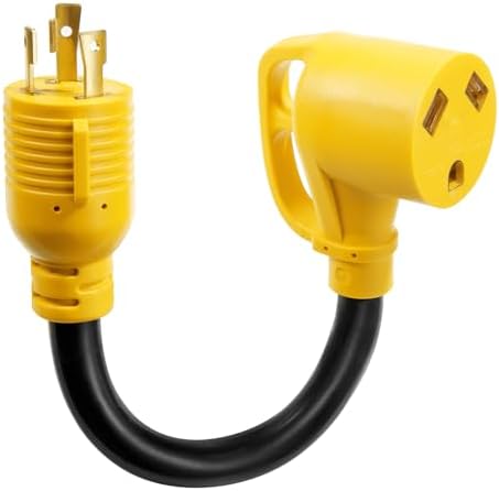 View full details30Amp RV Generator Adapter Cord 3 Prong 30 Amp Twist Lock Adapter,NEMA L5-30P Twist Lock Male to TT-30R Female for RV Camper Caravan Van Trailer, Pure Copper Heavy Duty STW 10 AWG