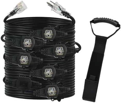 View full details30FT 12 Gauge Multi-Outlet Outdoor Extension Cord, 8 Evenly Spaced Weatherproof Outlets, Great for Stage Backdrops, Landscape Garden Lighting, Christmas Decorations