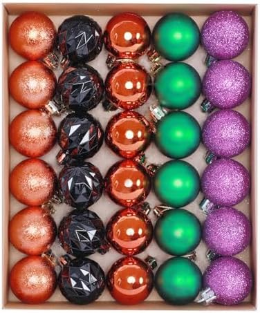 View full details30ct Halloween Ornaments Tree Decorations Indoor for Mini Small Tree, 1.57Inch Purple/Orange/Green/Black Shatterproof Ball Ornaments Set for Table Decor, Fall Christmas Holiday Party Home