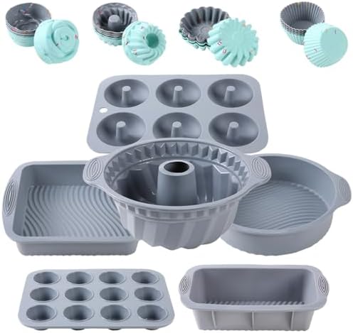 View full details30pcs Nonstick Silicone Bakeware Set With Baking Pan, Cake Molds, Baking Sheet, Donut Pan, Muffin Pan,Cake Pan, And 24 Pack Cupcake Mold Baking Cups (grey)