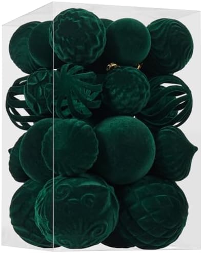 View full details30pcs Velvet Christmas Ball Ornaments, Flocked Shatterproof Christmas Ornaments Hanging Xmas Tree Decorations Set for Home Party Holiday Decor (Multi-Size, Dark Green)