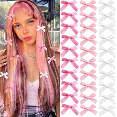View full details30PCS Pink Mini Hair Bows Small Bowknot Ribbon Barrettes Cute White Bow Clips for Girls Teens Metal Alligator Clips Kawaii Hair Clips Accessories for Thick Thin Hair