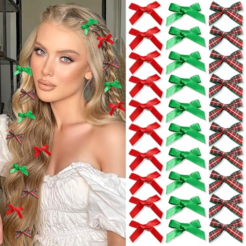 View full details30PCS Red Mini Hair Bows Green Bows for Hair Gingham Small Silk Satin Hair Bows for Women Cute Ribbon Bows Bowknot Hair Barrettes Alligator Hair Clips Christmas Accessories for Girls