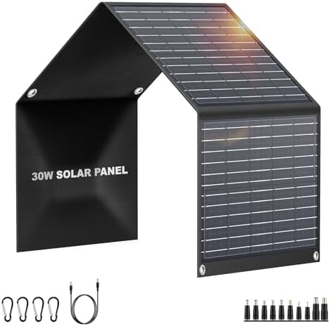 View full details30W Portable Solar Panel with USB QC3.0/USB-C/18V DC(10 Connectors), Backpacking Solar Charger for Power Station, Phones, Laptop, Foldable Solar Panels for Camping Home Hiking