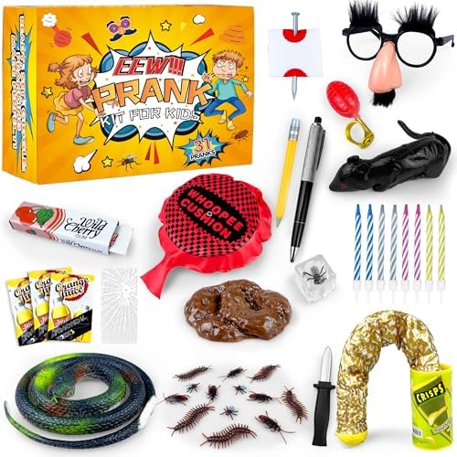 View full details31 PCS Prank Kit for Kids Prank Toys Pack Set Box for Gifts April Fools Pranks Practical Jokes for April Fool's Day Halloween Christmas Birthdays