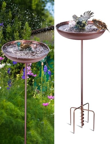 View full details31.5 Inches Bird Baths for Outdoors, 12" Bird Bath Bowl with Auger Drill Bit 5 Prong Bases Stake Vintage Garden Birdbath Standing Copper Bird Bath for Yard Garden Decor.