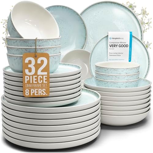 ✅ Bring The Casual Mediterranean Flair To Your Home: Experience an unparalleled feeling with the unique 32 piece dinnerware set for 8. The warm,...
