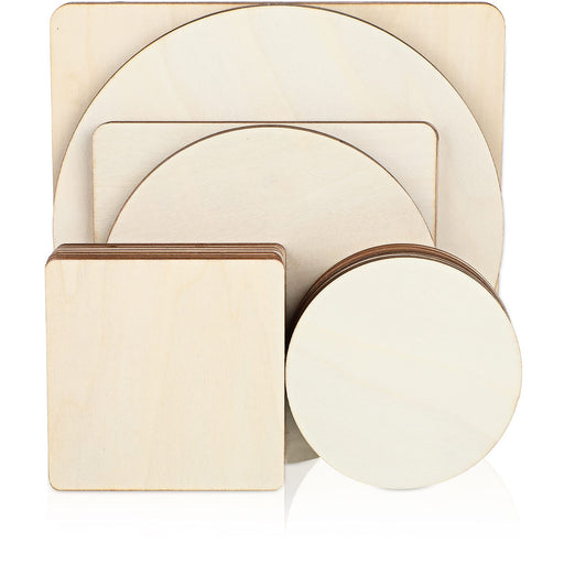 2 Shapes and 3 sizes: there are a total of 32 pieces unfinished blank wood pieces, including 16 pieces wooden squares for crafts and 16 pieces r...