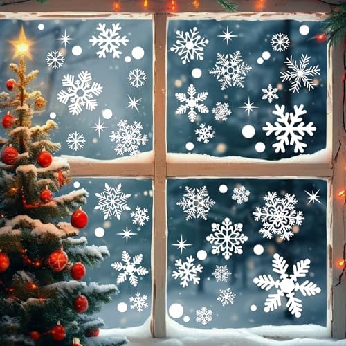 View full details320 Pcs 10 Sheets Christmas Window Clings, Christmas Window Stickers, White Snowflake Window Decals, Double-Sided Reusable Winter Window Decoration Stickers for Holiday, Party Supplies