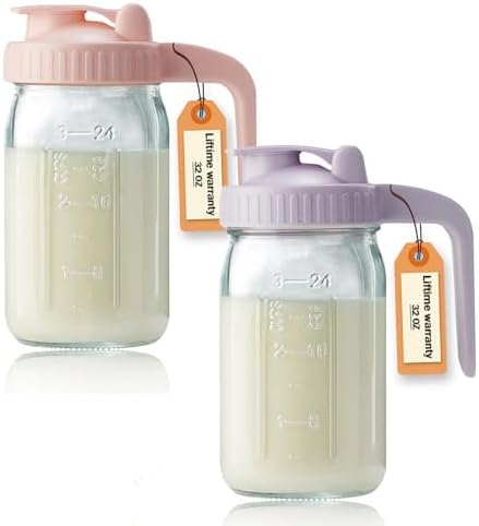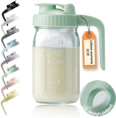 View full details32oz Glass Pitcher with Lid & V-shaped Pour Spout - 1 Quart Breastmilk Pitcher Double Leak Proof, Creamer Container for Sun Tea, Juice, Cold Brew Coffee, Breastmilk Storage Container