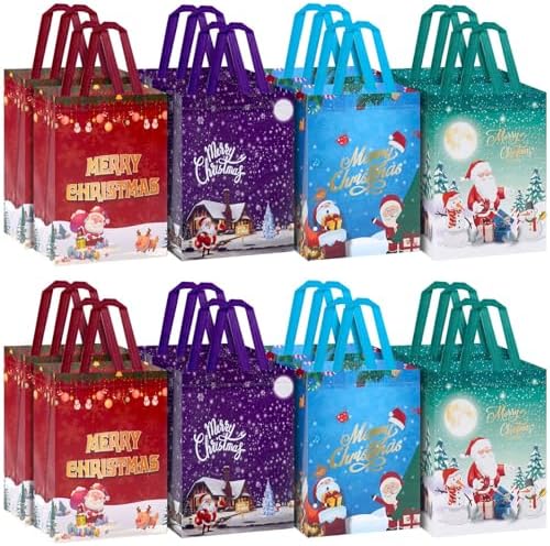 Value Package: This set includes 32 Christmas non-woven bags, 4 different holiday classic designs and each design has 8 pieces. Well packed Give...