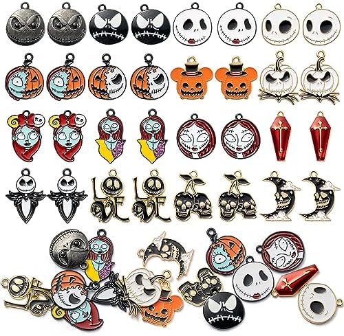 View full details32Pcs Jack and Sally Christmas Charms Pendants, Horror Pumpkin Ghost Enamel Charms Halloween Scary Earring Necklace Bracelet Pendant for Jewelry Making DIY Crafts Xmas Gifts
