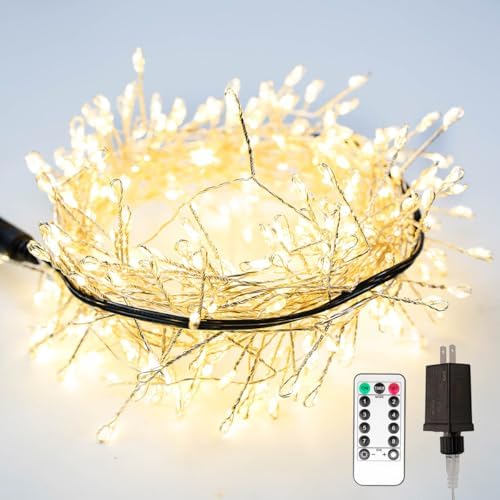 View full details33FT Firecracker String Lights 300 LED Warm White Plug in Indoor Silver Wire LED Cluster Fairy Lights with Remote for Christmas Tree,Plant,Bedroom,Garden,Patio,Backyard