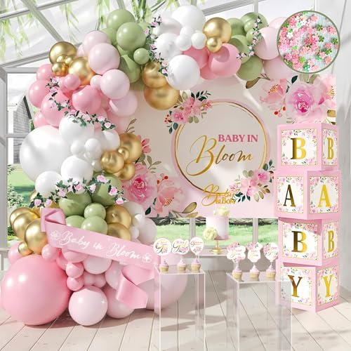 View full details338 PC Baby in Bloom Baby Shower Decorations for Girl - Balloon Arch Garland & Baby Boxes with Letters, Backdrop, Cake topers, Sash and More - Floral Baby Shower Decorations Pink and Sage Green