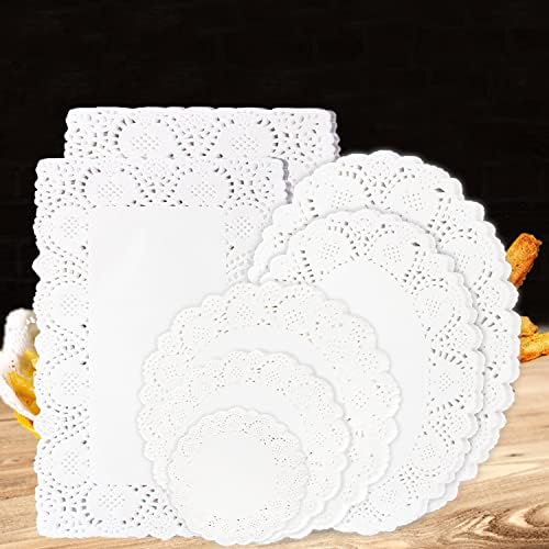View full details350 PCS Disposable Doilies Paper Lace Assorted Size Food Grade Decorative Placemats Add Elegance to Serving Tray Plates, Coffee, Cake, Desert, Table, Tableware Decoration (Round Rectangle Oval White)