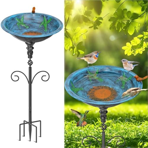 View full details35.4" Tall Bird Bath for Outside, Vintage Metal Birdbaths Bowl with 5 Prong Bases for Outdoors, Freestanding Birdfeeder with Hummingbird Carving for Garden Yard Lawn Decor (Retro Blue)
