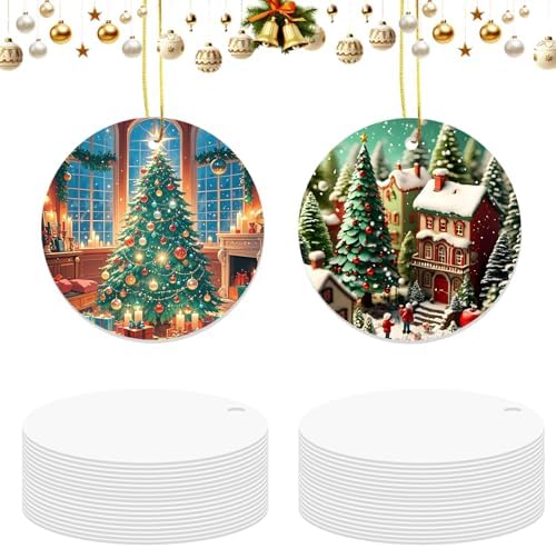 View full details36 Pcs Metal Sublimation Ornament Blanks Bulk Double Sided, Aluminum Sublimation Christmas Ornament Blanks, Round Christmas Sublimation Blanks with Strings for Gifts Christmas Tree Home Decor