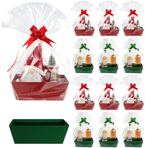 View full details36 Pieces Basket Gift Set:12 Pieces Empty Sturdy Diy Bulk Gift Basket Kraft Market Tray Cardboard Basket 12 Pieces Clear Basket Bags 12 Pieces Cellophane Wrap Ribbon Bows for XmasHoliday Birthday Gift (Christmas Red and Green)