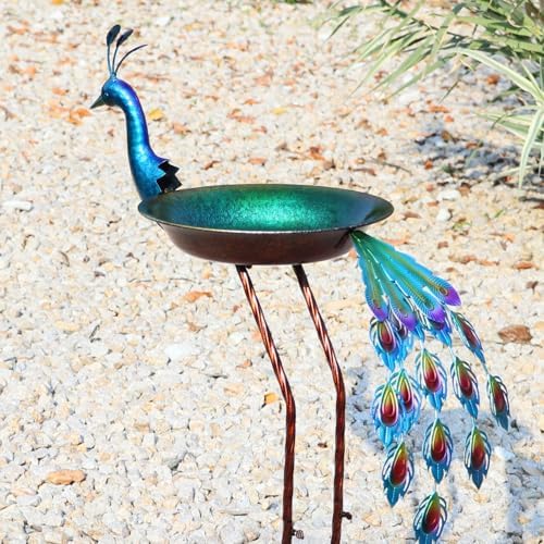 36" H Peacock Bird Baths for Outdoor, Metal Bird Feeder Seed Trayr,Outdoor Bird Bath,Garden Lawn Yard Decor