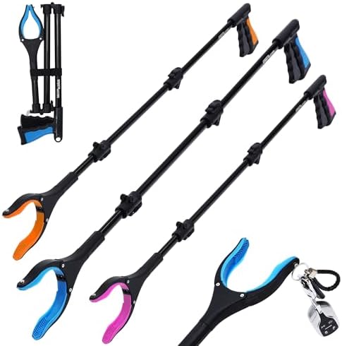 View full details38" Extra Long Grabber Reacher Tool – 3 Pack Foldable Reacher Grabber Pickup Tools with 360° Rotating Jaw & Magnet - Heavy Duty Pick Up Grabbers for Seniors, Trash, Surgery Recovery (Orange Blue Pink)