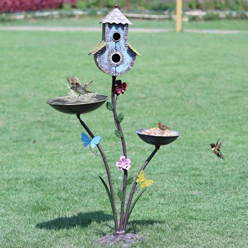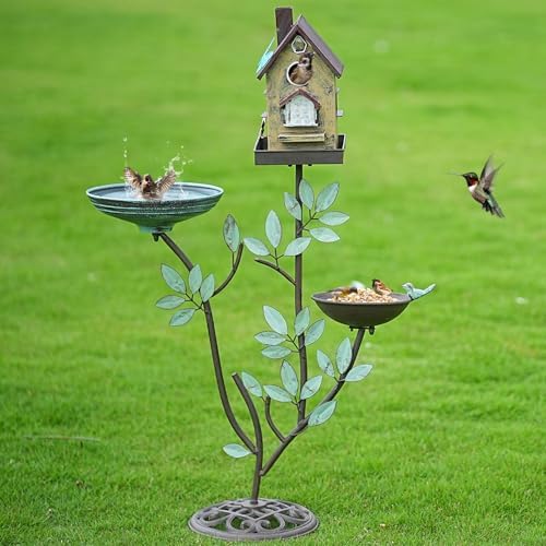 View full details38" H Birdbaths for Outdoors,Metal Bird Feeder and Bird Houses for Outside,3-in-1,Garden Yard Decor