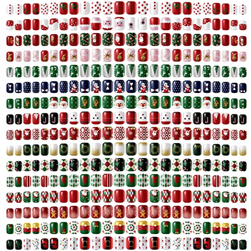 Large Quantity: there are 16 packs of Christmas short fake nails in Christmas theme, 384 pieces in total; Please note that glue or gel not inclu...