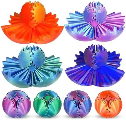 3D Printed Gear Ball Gear Sphere Fidget Toy, 4 Pcs Steampunk Whirling Wonder Fidget Gear Ball Stress Anxiety Relaxing Fidgets Toys for Office and Home Christmas Stocking Stuffers Party Favors Gift