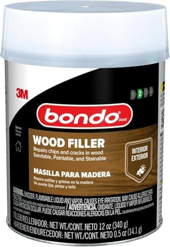 View full details3M Bondo Wood Filler – 30 fl oz, High-Performance Two-Part Formula for Interior and Exterior Wood Repairs, Fast-Curing, Paintable, Stainable