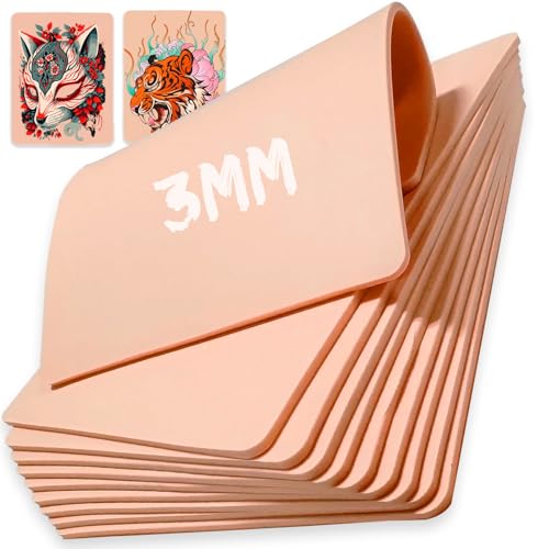 View full details3mm Tattoo Practice Skins - 10-Pack Professional Thick Silicone Sheets (5.6"x7.5") - Realistic Tattoo Skin for Training, Perfect for Beginners & Artists - Durable Fake Skin for Machine Practice