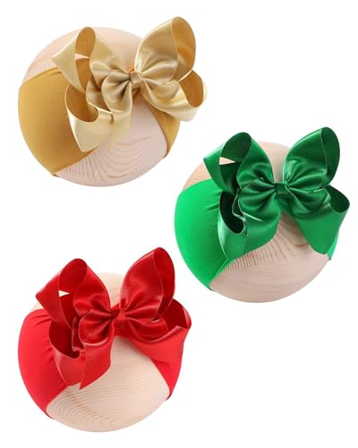 View full details3PCS Baby Bows doboi Christmas Baby Girl Headbands Nylon Hairbands with Golden Weft Webbing Ribbon Bow Handmade Elastic Shiny Baby Hair Bows Headbands for Baby Girls Newborns Infants Toddlers and Kids