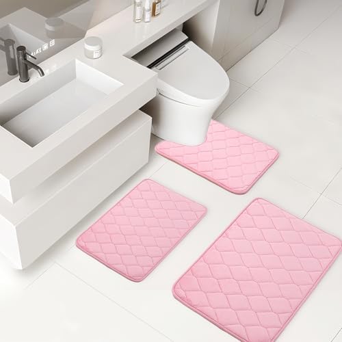 View full details3Pc Bathroom Rug Sets, Non Slip Memory Foam Bath Mat Rug, Extra Absorbent Soft Bath Mat Sets, Washable Area Rugs for Bathroom, Toilet Pink