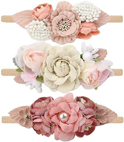 View full details3pcs Baby Girl Floral Headbands Set-Elastic Hair Band Crown Flower Wraps for Newborn Infant Toddler